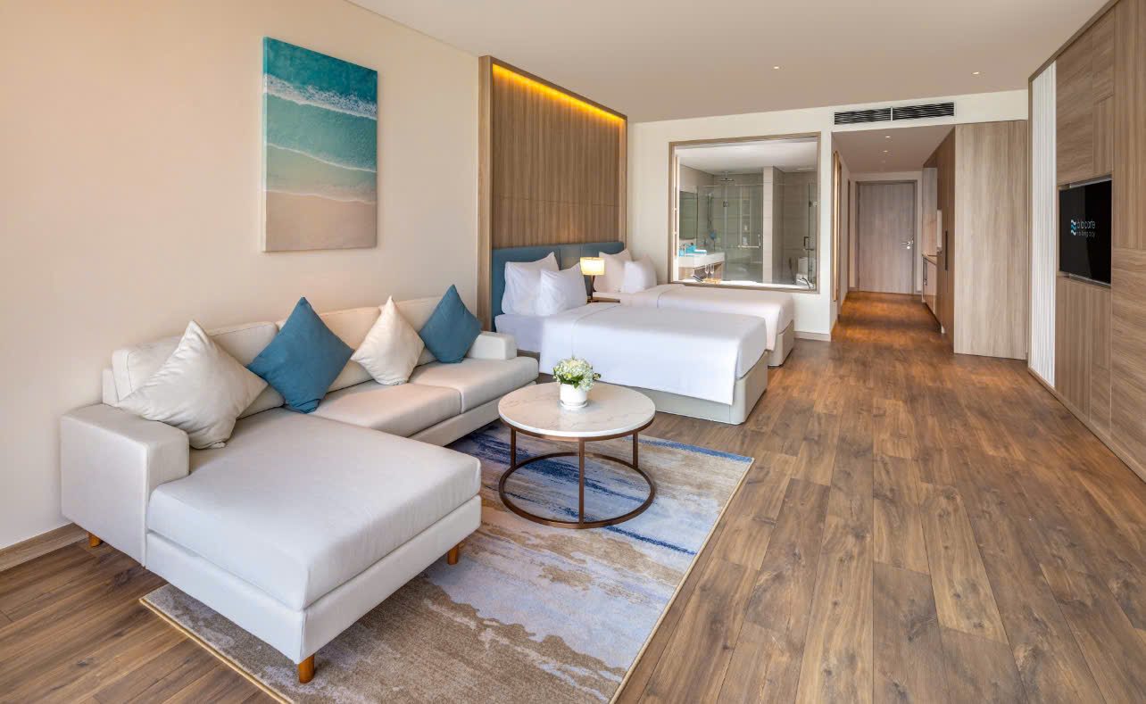 • Đặc điểm nổi bật: Khách sạn nổi bật với vị trí trung tâm, kiến trúc hiện đại và tầm nhìn hướng sông Vân thơ mộng, mang đến không gian sang trọng và thư thái.